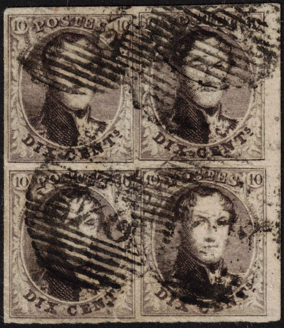 6 en bloc de 4, timbres margés, obl P 24 Bruxelles.
