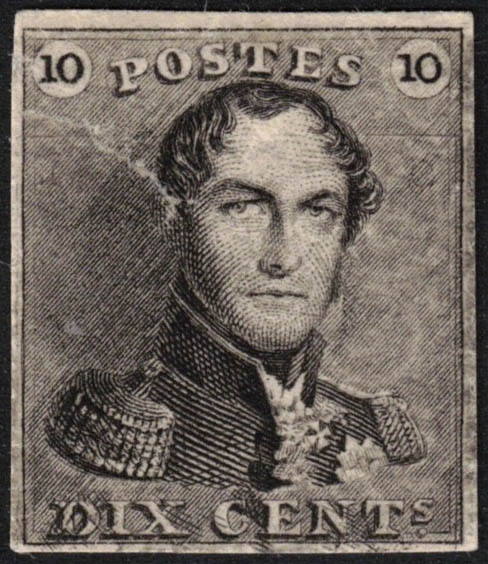 Epaulette 10c - Epreuve de la planche unique en noir sur papier blanc épais. Variété 1V16 position 153. Spectaculaire. Légère éraflure. Catalogue W. Balasse p. 41 et 42.