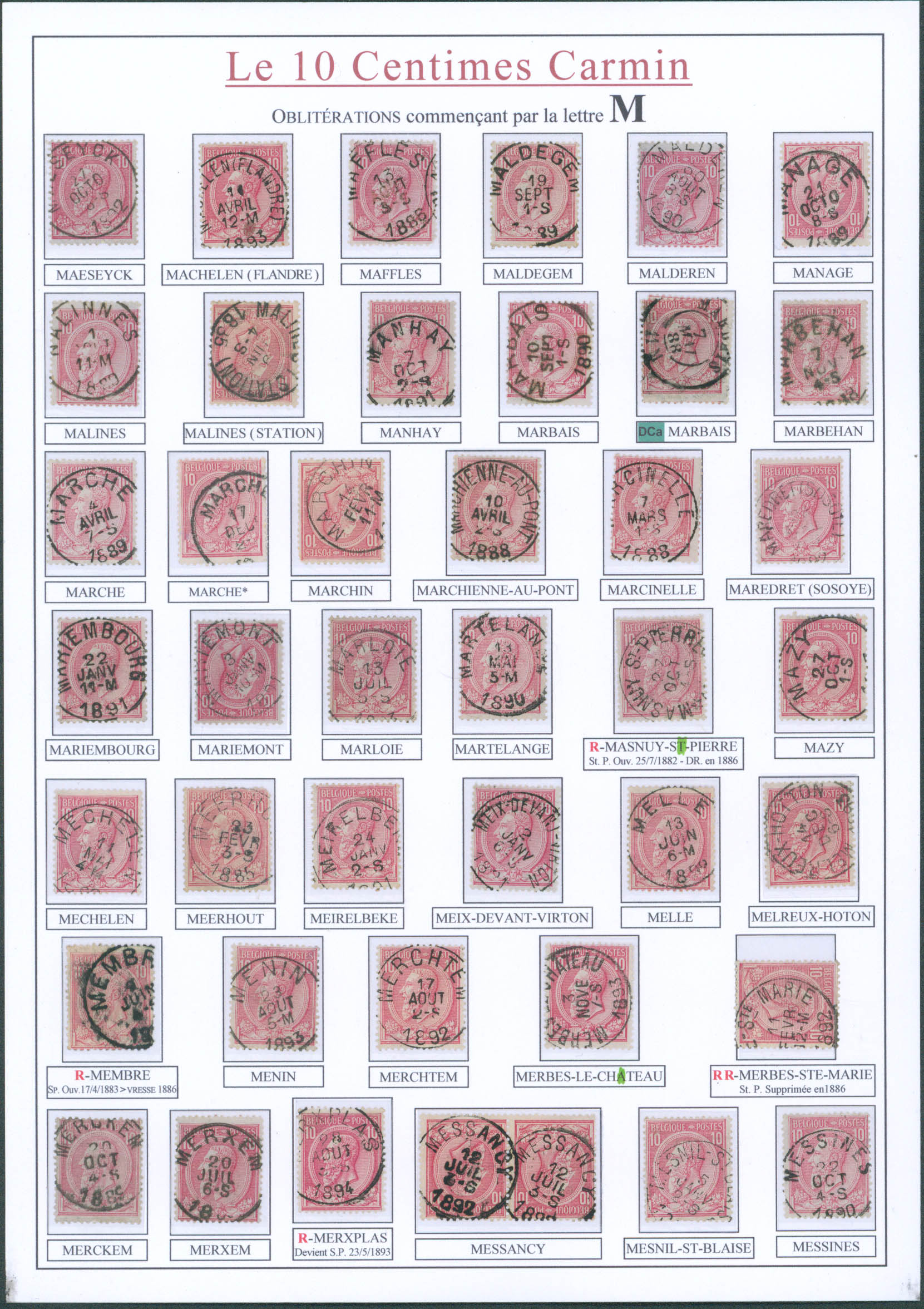 N° 46 - un classeur : environ 880 timbres classés par ordre alphabétique d'oblitérations simples cercles (de Achel à Wyngene) et quelques rares obl DC (Ardenne, Attert, Bilsen, Langemarck, Lanaeken, Lanklaer, Lommel, Marbais, Moorslede..). Superbe ensemble de qualité.