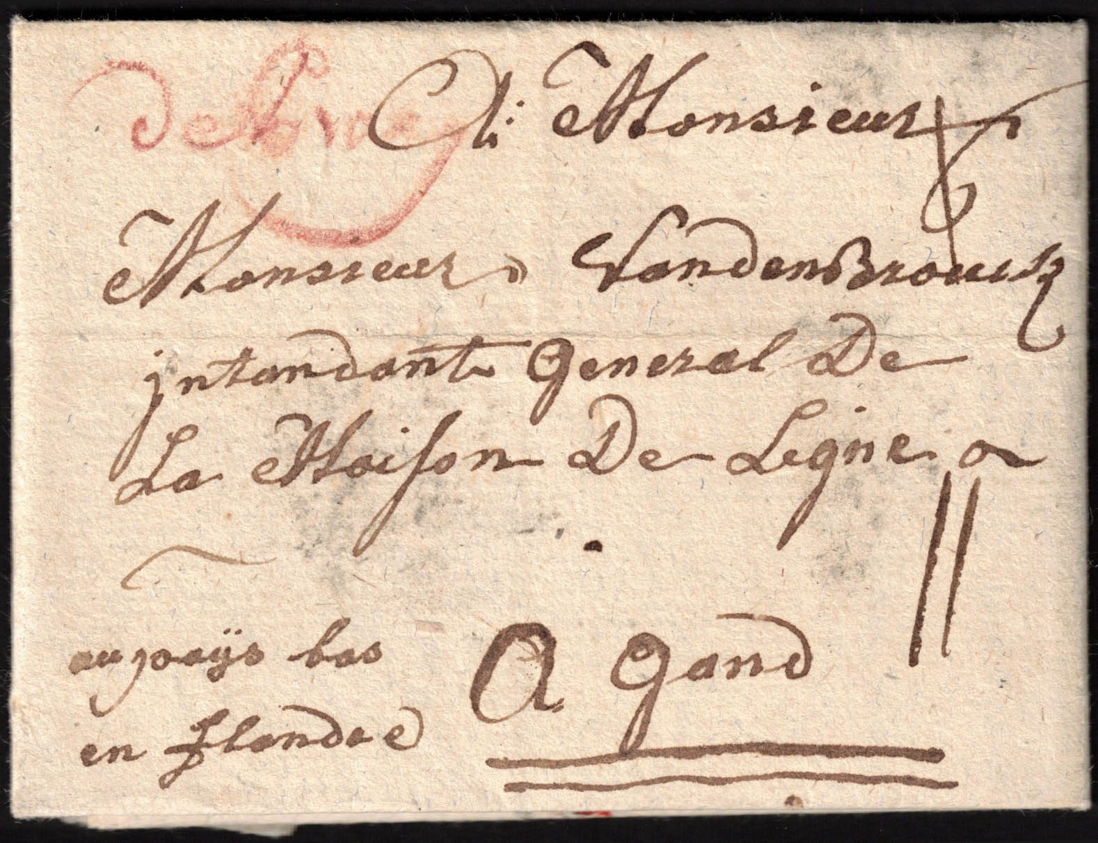 LAC datée du 4/6/1778 vers l'Intendant Général de la Maison de Ligne à Gand. Port 6 sols à la craie. En rouge 'De Croy' ? TB état.'