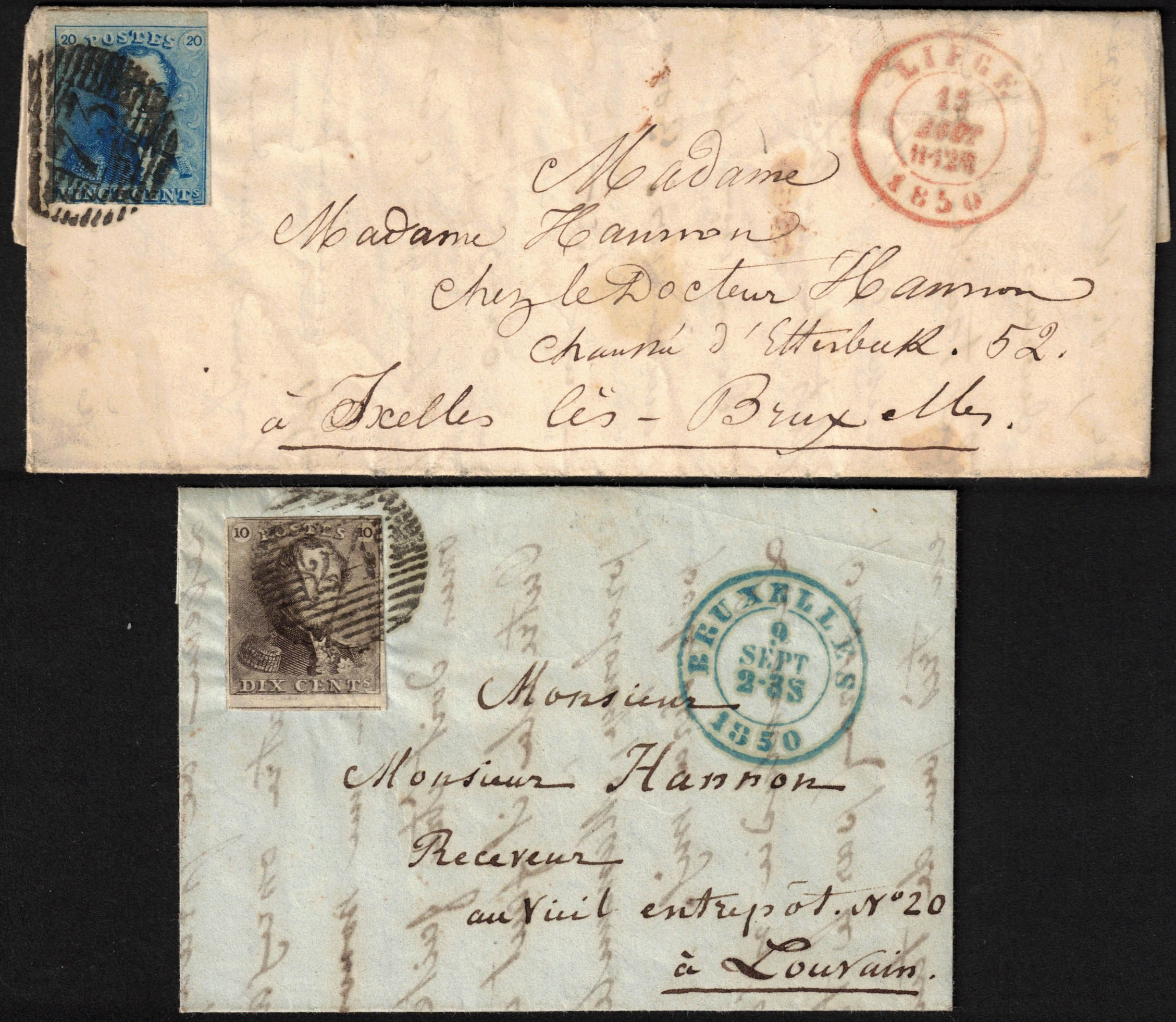 1 touché bdf + voisin obl P 24 de Bruxelles 9/9/50 vers Louvain et 2 touché bdf obl P 73 de Liège vers Ixelles.