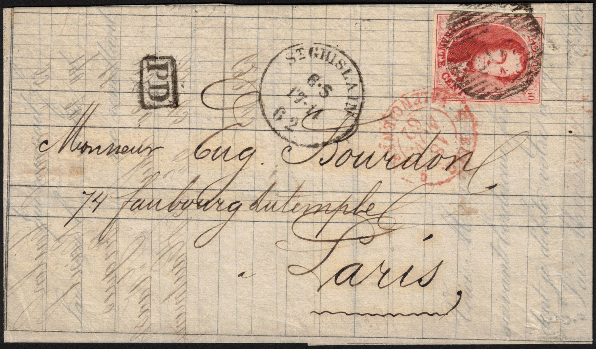 12 bien margé obl P 103 + càd St Ghislain 17/11/62, LAC vers Paris.