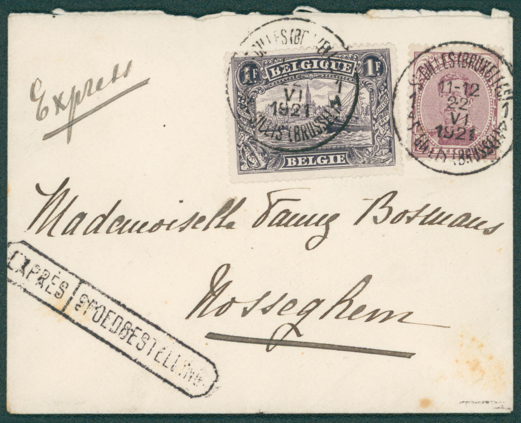 140-145 obl St Gilles/Bruxelles 22/6/21 en expres vers Nosseghem, càd Cfer 22/6 verso.
