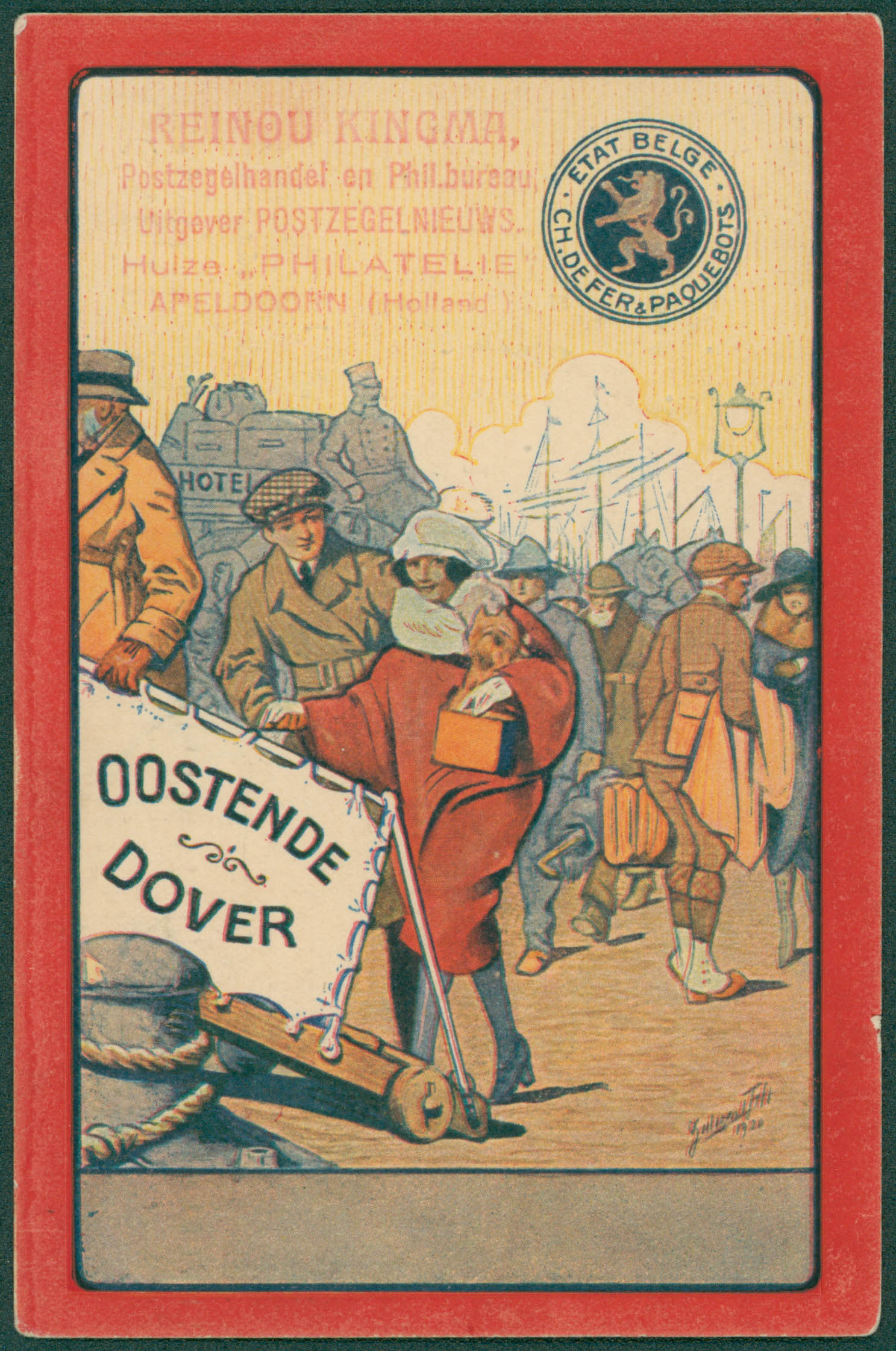 Paquebots Ostende-Douvres - CP 16, 5c sur 15c violet - a. voyageurs - Circulé aux Pays-Bas, afft 5c par Yv. 138 de Apeldorn 20/8/1930 vers Rotterdam. Peu courant.