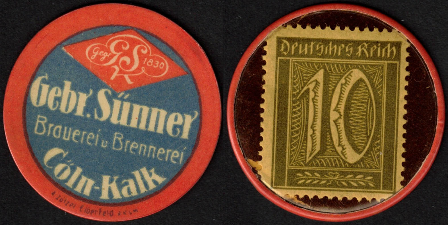 Timbre monnaie - Yv. 139 - Publicité au verso 'Gebr. Sünner'. Brasserie.'