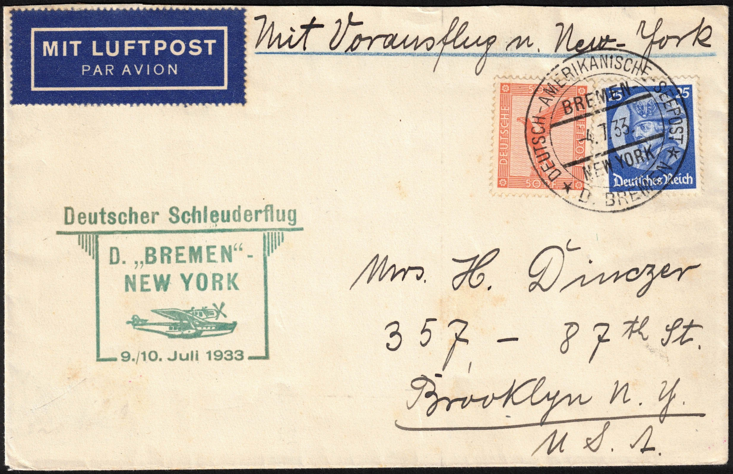 Yv. 469-PA 31 obl Bremen 4/7/33 Deutscher Schleuderflug/D Bremen New-York/9.10 Juli 1933' vers Brooklyn. TB'