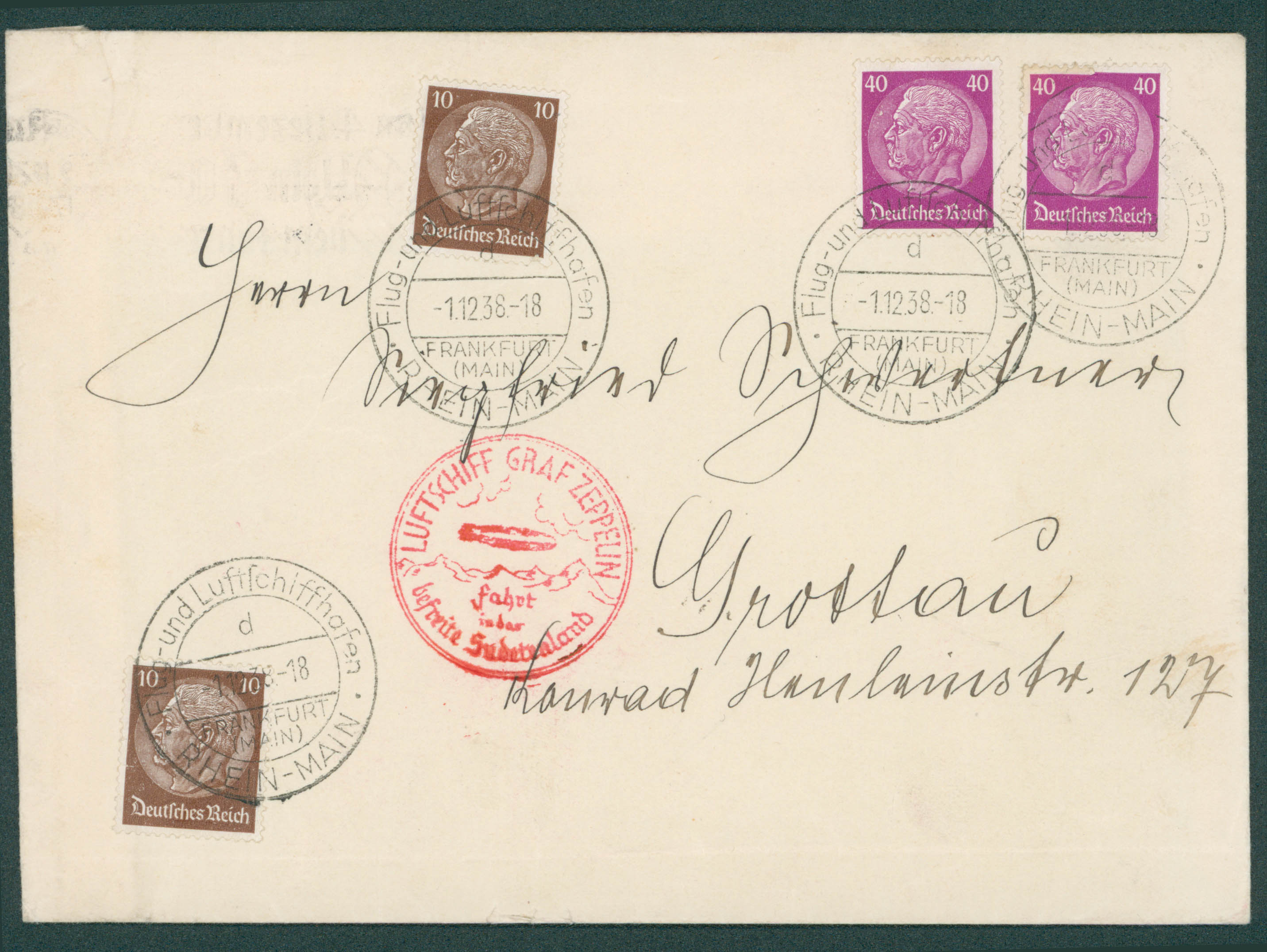 Yv. 447x2-455x2 obl Frankfurt 1/12/38, Graf Zeppelin fahrt in der befreite Sudetenland vers Grossau.