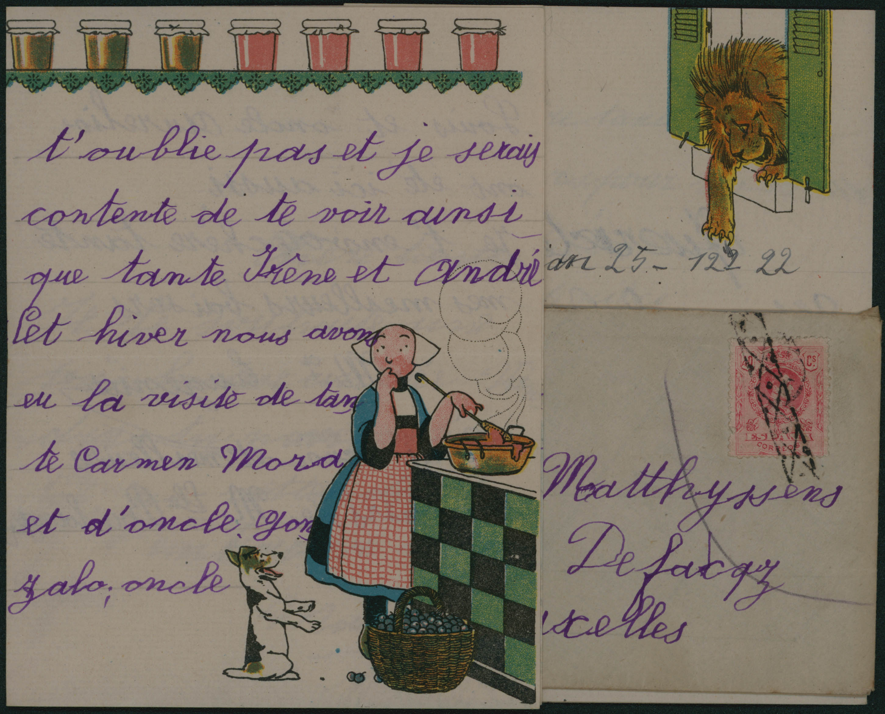 Yv. 250 annulation roulette sur petite enveloppe + 2 contenus illustrés datés San Sebastian 25/12/22 vers Bruxelles.