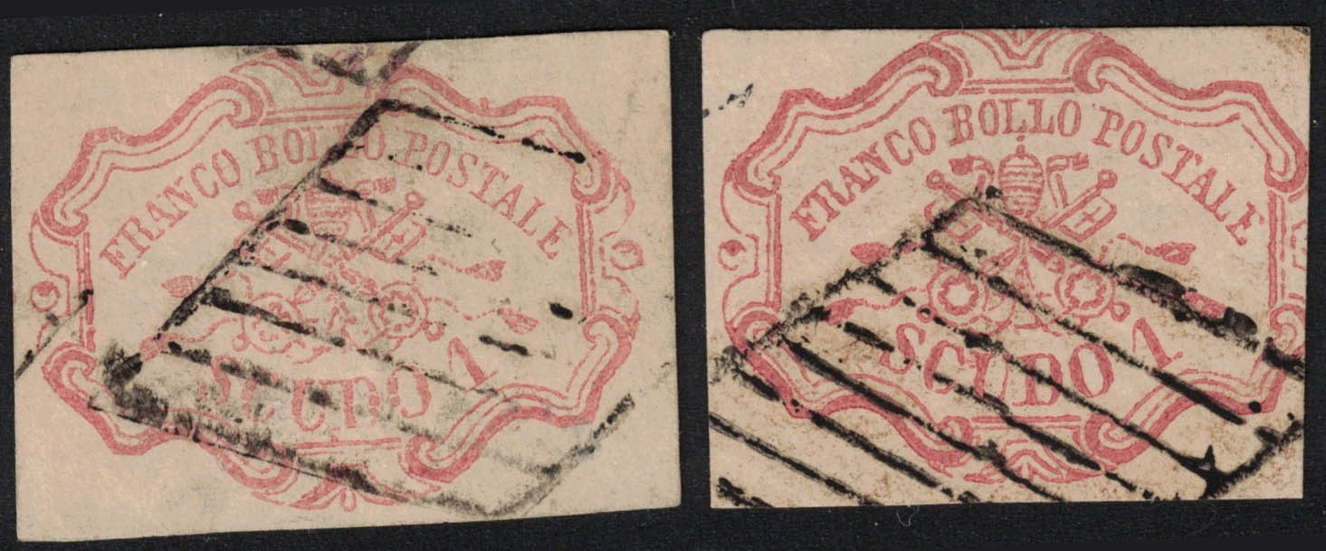 Etats Pontificaux - Yv. 11, 2 exemplaires oblitérés, 1 signé Diena et l'autre signé Calves. A examiner.