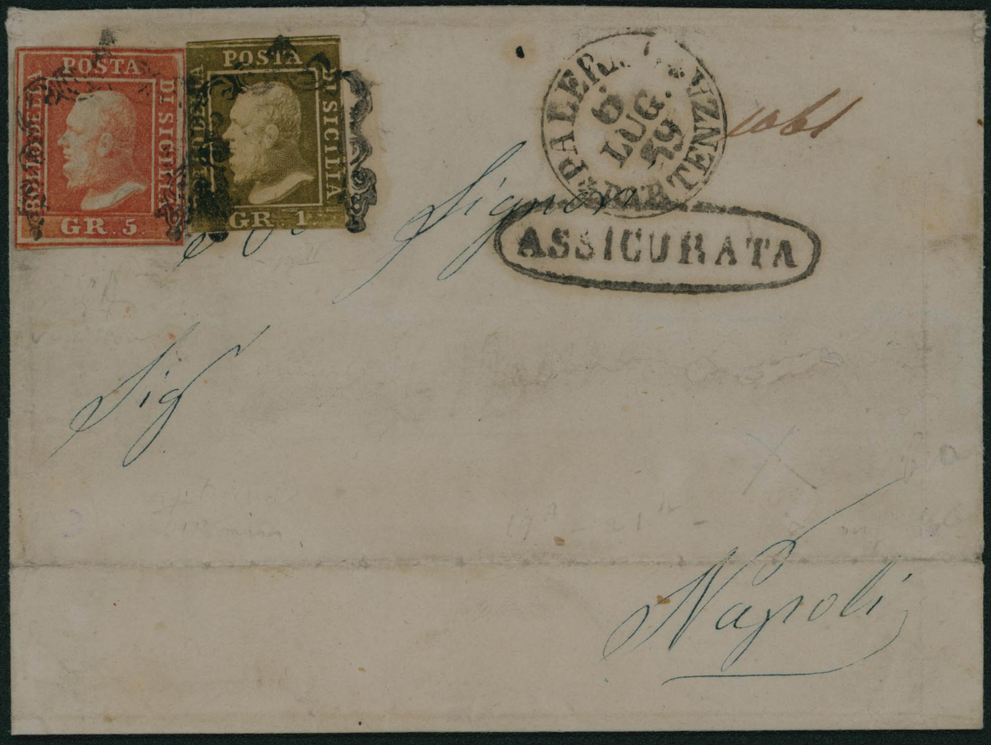 Sicile - Yv. 19-21 sur LSC datée de Palermo 2/6/1859 (nom du destinataire occulté) vers Napoli.