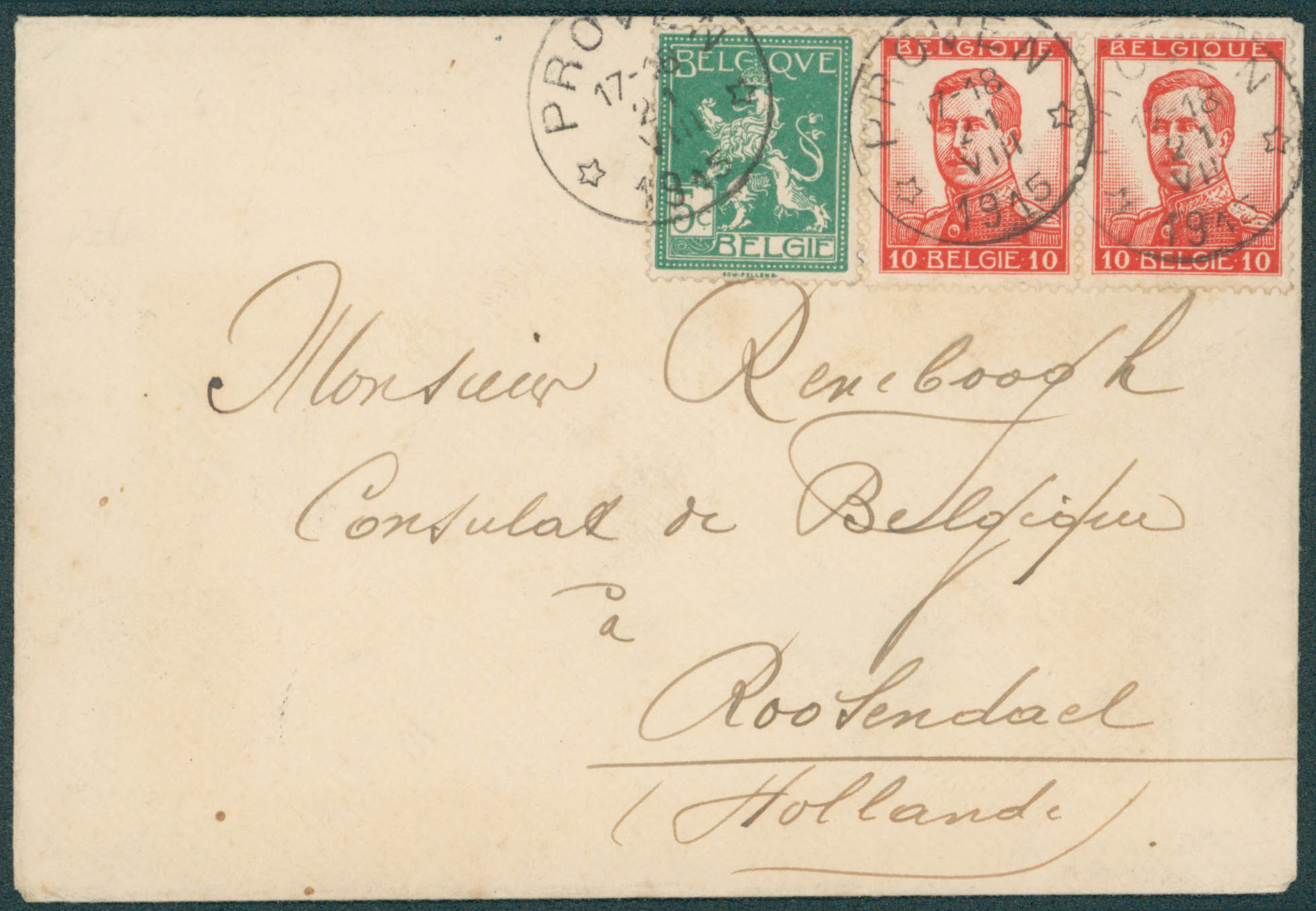 Territoire non envahi - 110-123x2 obl relais Proven 21/8/15 vers Roosendael, Pays-Bas. Càd arrivée verso 30/8.