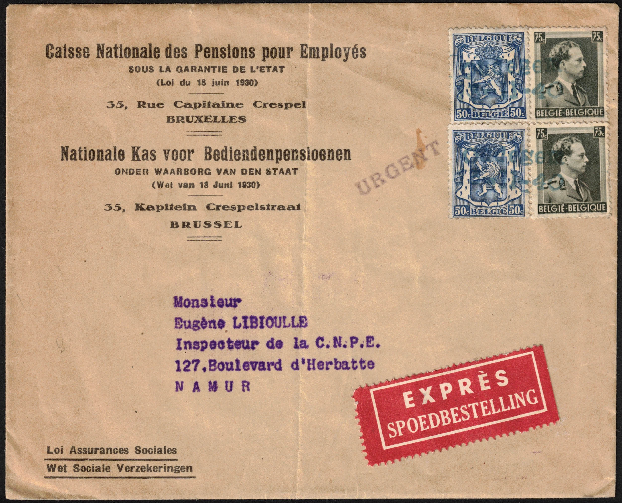 426x2-480x2 annulés par la griffe bleue de fortune d'Oudegem 13-11-40 sur env en expres vers Namur. TB