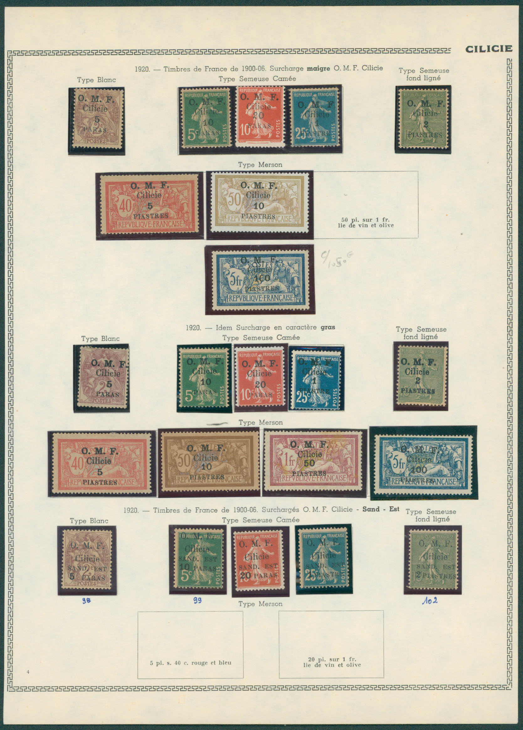 Cilicie - collection entre Yv. 2 et 104 obl/X/XX dont 88X + postes annexes. TB